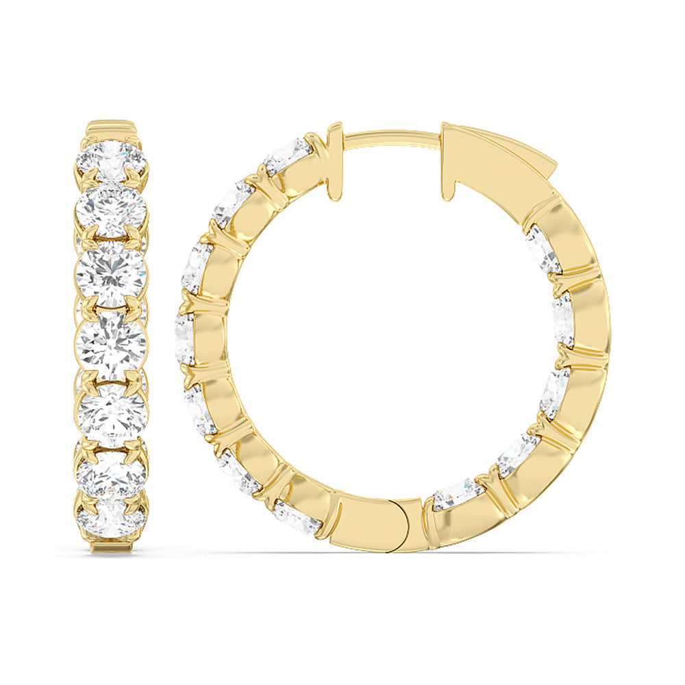 Dress up for a big night with these elegant earrings framing your face. These diamond hoops feature a row of symmetrical round diamonds on their inner and outer front-facing edges. Each hoop has twelve sparkling stones ready to add a dazzling detail to your look.